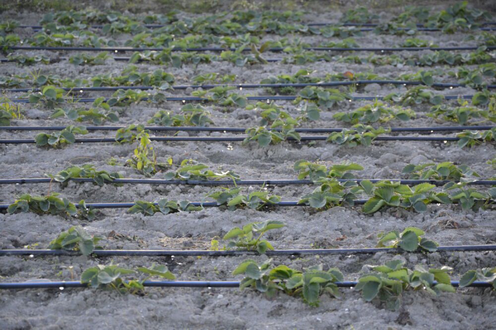 Posiadając nawodnienie kroplowe w tunelowej lub polowej uprawie truskawek możemy stosować fertygację.