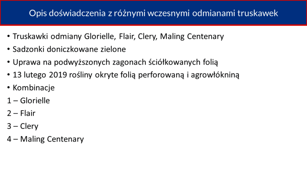 Odmiana „Seraphine” jest odmianą średnio wczesnego okresu dojrzewania owoców, jest to całkowita nowość odmianowa. Wraz z Adamem Borzęckim, chcemy sprawdzić tę odmianę pod kątem przydatności uprawy na przyspieszony zbiór pod niskimi osłonami, w rejonie Czerwińska nad Wisłą. Tej odmiany w Polskiej uprawie jeszcze nie widziałem, ale pewnie kilka kwater powstanie z tą właśnie z odmianą „Seraphine” i już wkrótce będziemy mogli o tej odmianie powiedzieć coś więcej.