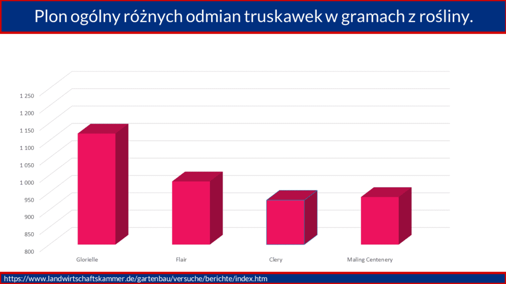 Poniżej kilka wyników plonowania odmiany „Grorielle” w doświadczeniach Niemieckiego instytutu badawczego,
