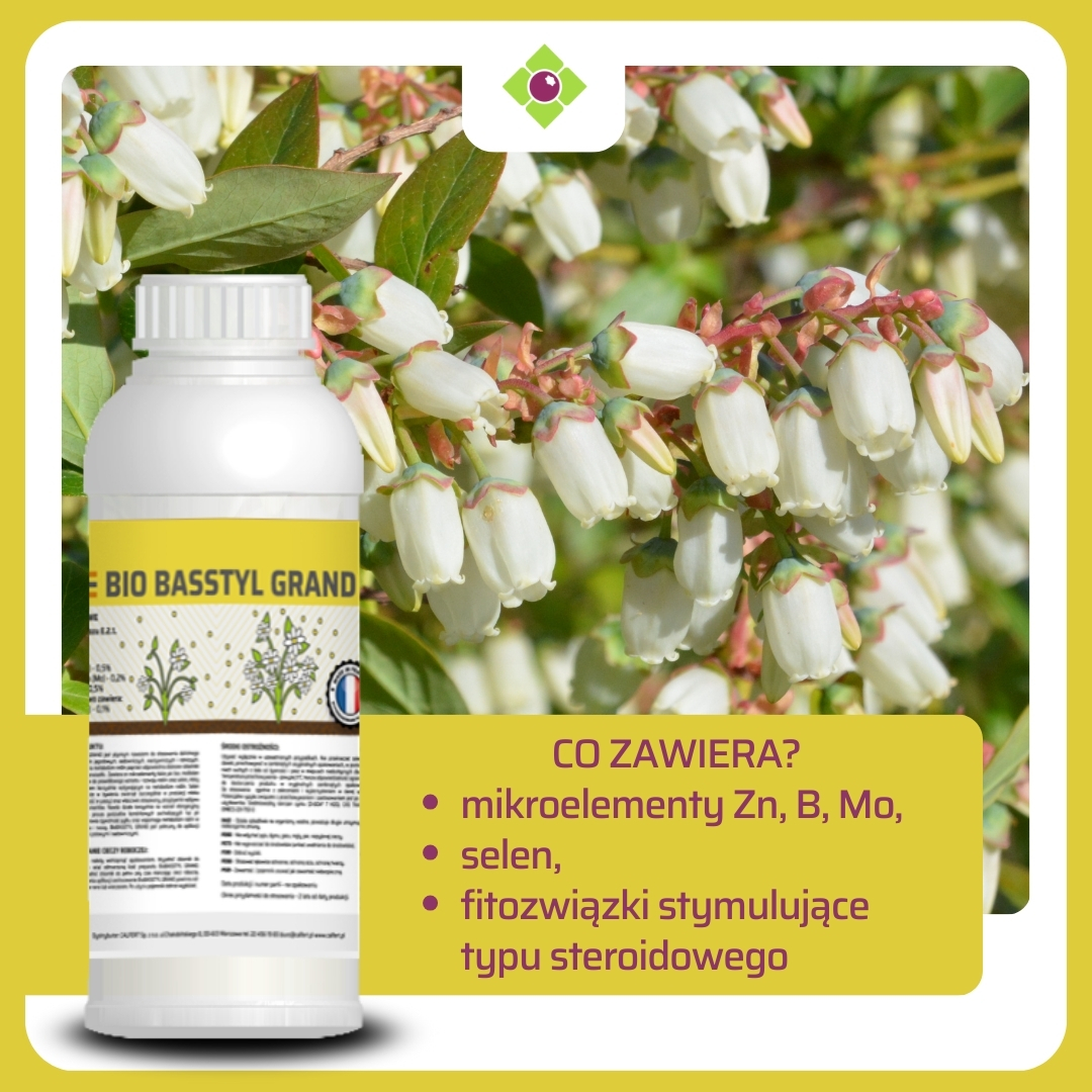 Bio Basstyl Grand to nowoczesny nawóz, aktywator i stymulator kwitnienia roślin, pozytywnie wpływa na poprawę kwitnienia i zawiązywanie owoców. Jego skład jest bogaty w mikroelementy, które są niezbędne do wzrostu i rozwoju roślin. Zawiera także związki stymulujące pochodzenia roślinnego typu steroidowego. Czym jest Bio Basstyl Grand i jaki ma skład Bio Basstyl Grand to specjalistyczny, płynny nawóz mikroelementowy przeznaczony do stosowania w uprawach sadowniczych, jagodowych oraz warzywniczych. Jego unikalność na rynku wynika z połączenia niezbędnych mikroskładników  z naturalnymi hormonami roślinnymi typu steroidowego. Bor (B) odpowiada za procesy kwitnienia i wzrostu stożka wzrostu. Cynk (Zn) jest niezbędny w