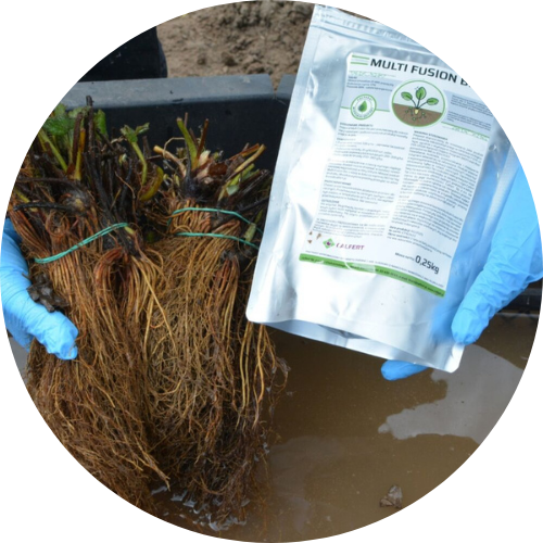 MULTI FUSION BIO może być aplikowany w zależności od rodzaju uprawy i etapu rozwoju roślin, aby skutecznie skolonizować system korzeniowy przez grzyby Glomus i wzmocnić plonowanie.